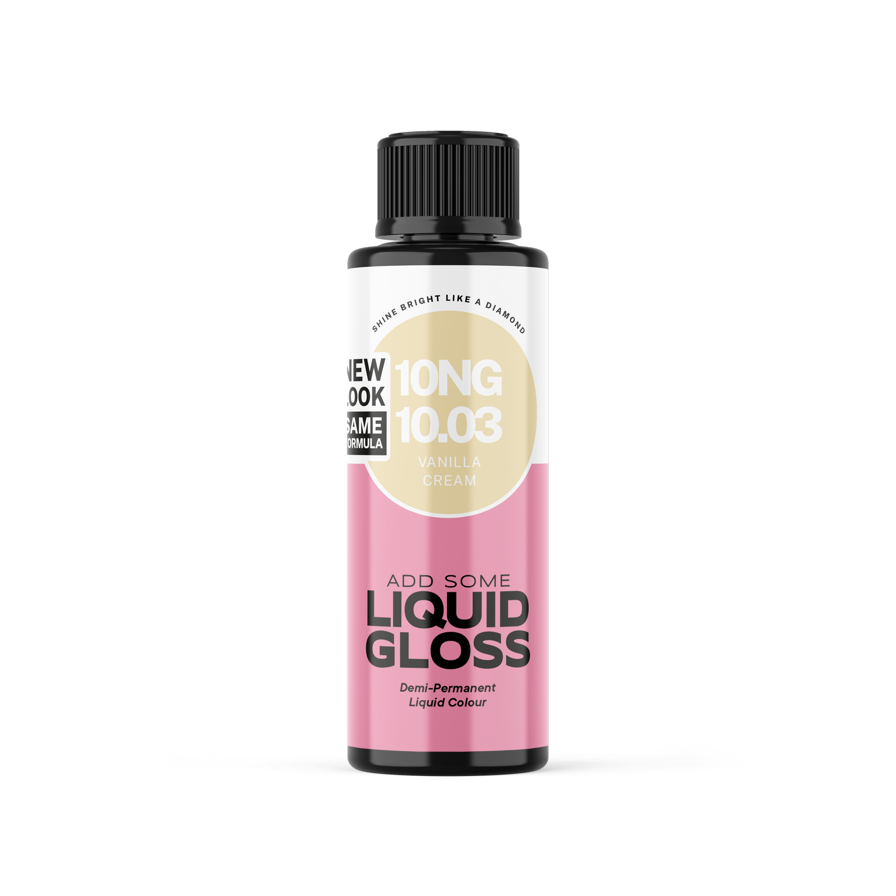 Nyanse 10NG / 10.03 Vanilla Cream fra serien Add Some Liquid Gloss er en ekstra lys blond (nivå 10) med en harmonisk kombinasjon av neutral («N») og gold («G»). Tonekoden 10.03 skaper en myk, kremet vanilje-refleks som tilfører akkurat nok varme til å gi liv og glød, uten å trekke mot gult. Resultatet er en delikat, naturlig og lys blondtone med elegant kremfinish.